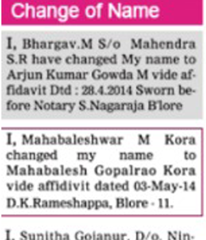 Recently Published Change Of Name Ads