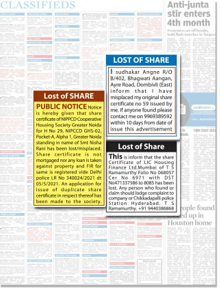 Now Booking Share Certificate Classified Display ads in Newspapers Made as Easy as a Few Clicks of the Mouse: